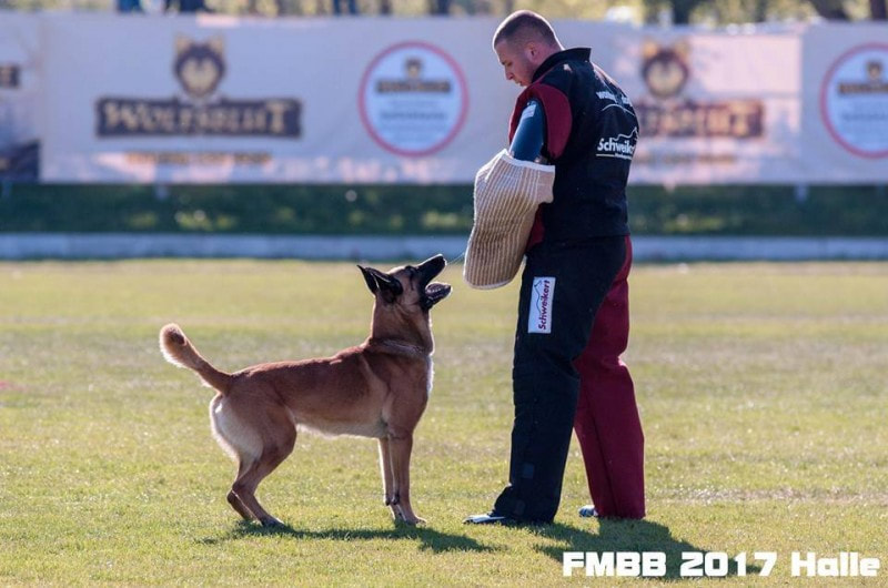 W dniach 26-30.04.2017 w Niemczech w Halle odbyły się Mistrzostwa Świata Owczarków Belgijskich – FMBB. Każdy ze 141 startujących psów z całego świata musiał wcześniej w swoim kraju przejść kwalifikacje , dlatego też śmiało można powiedzieć że na FMBB zebrały się najlepsze owczarki belgijskie na świecie. Po 5 dniach rywalizacji w wynikach końcowych polscy reprezentanci zajęli kolejno 8,12 i 17 miejsce. Jest to niebywały sukces!!! To pierwszy raz w historii startów Polski w FMBB aby zawodnik znalazł się w TOP 20. Nam w udziale przypadło 8. miejsce!!!! Rezultat ten przepełnia nas ogromną dumą , a sam występ dostarczył wielu emocji – wywrócenie pozoranta na płycie ;). Jesteśmy pełni pozytywnej energii i z optymizmem patrzymy na kolejne Mistrzostwa Świata IPO FCI, które już we wrześniu tego roku odbędą się również w Niemczech.